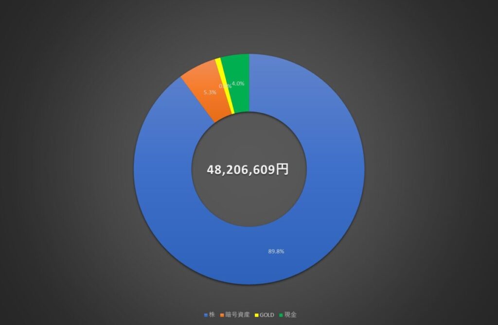 現金は証券口座及び証券口座に連動した口座の金額のみで、その他の現金はプライバシーの関係上含めていません。