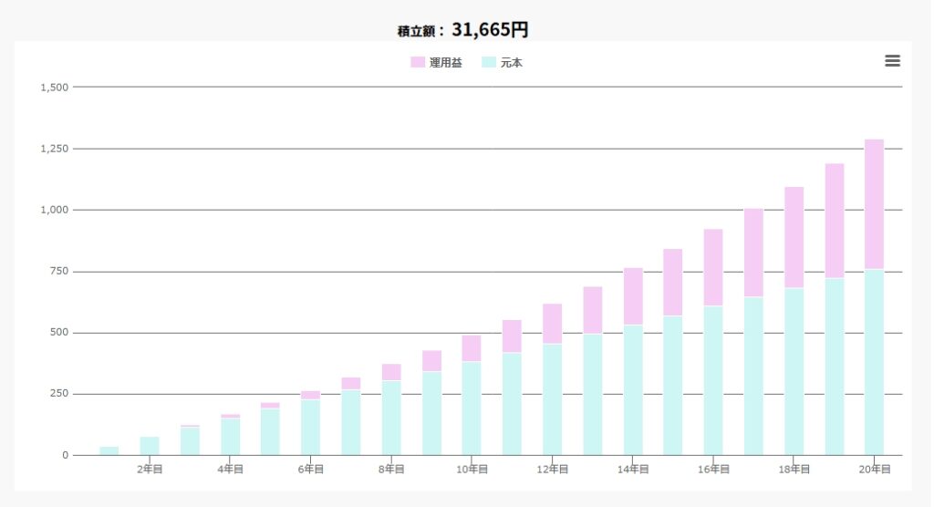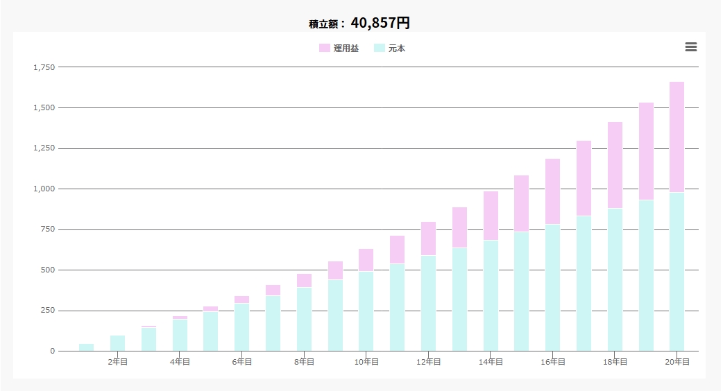 40歳から毎月31,665円の積立で60歳に1,285万円が達成できます。