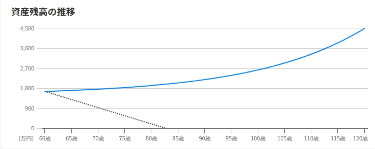 このライフプランで行くと、積立が60歳までなので60歳までに100歳まで取り崩し可能な資産を用意する必要があります。