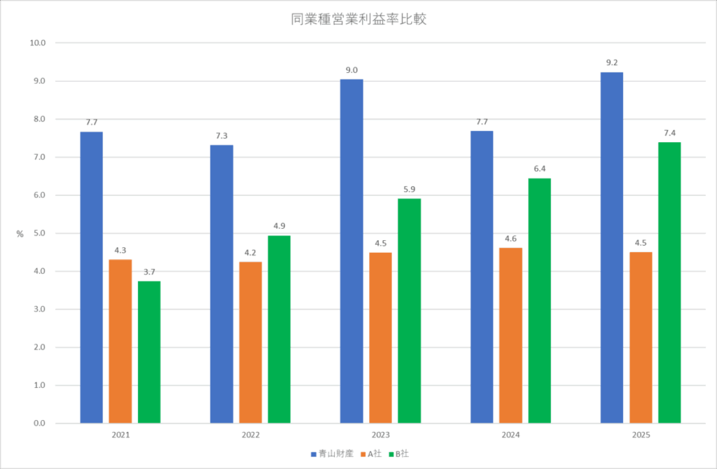 同じ不動産業の同業種と比較しても謙遜ないことが分かります。