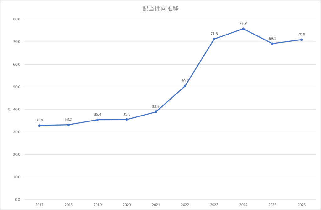 配当性向とは利益のどのくらいを配当として支払ったかを示す指標のことで、高すぎると減益時に配当維持が難しくなり減配リスクが高まります。