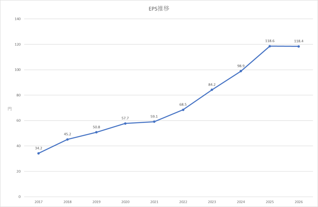 利回り4%、12期連続増配、EPSも右肩上がりで推移と問題なさそうですが、今後も安定した配当が出せるかは他の視点からの分析も必要となります。