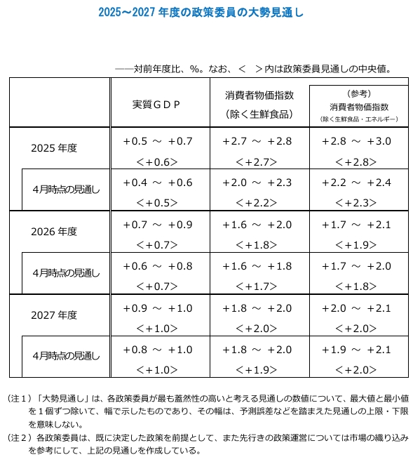 日銀の見通しでは2026年~2027年は1%後半から2%に落ち着く見込みとされています。