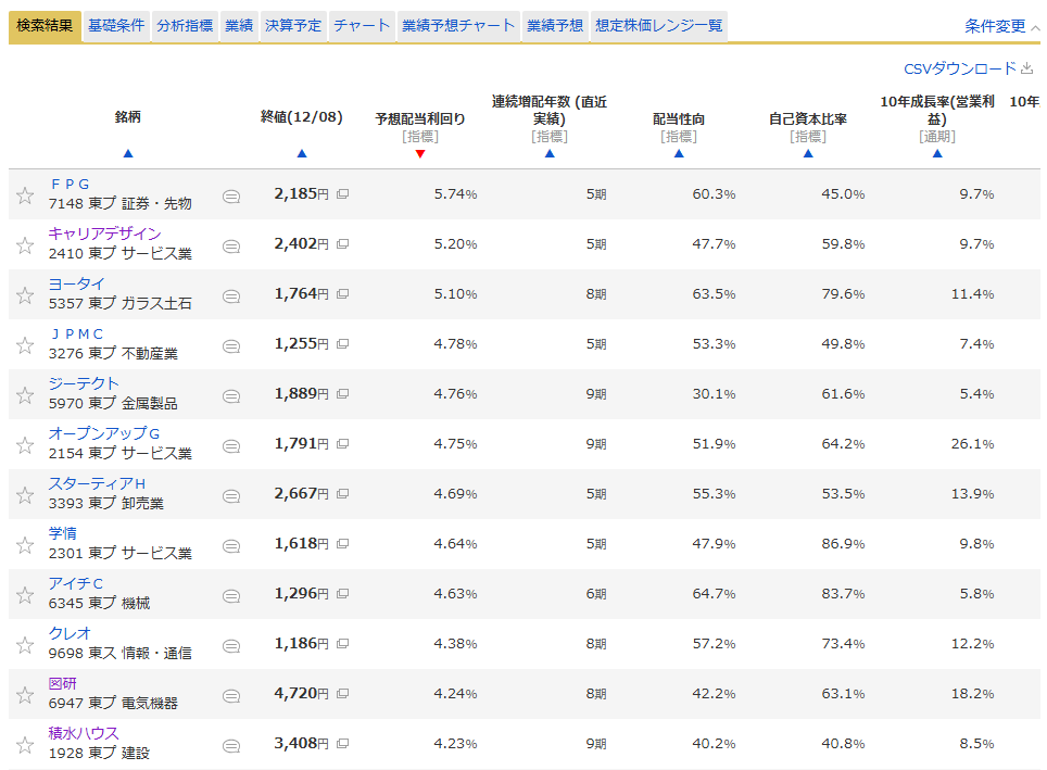 スクリーニングを行うと下記の銘柄がリストアップされます。