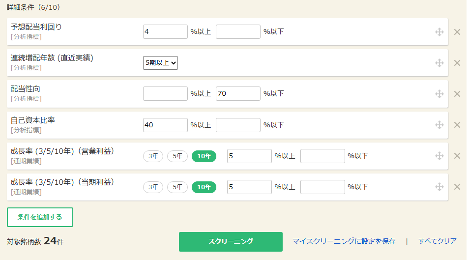 増配を継続的に続けていく企業を選定するうえでスクリーニングは重要になります。