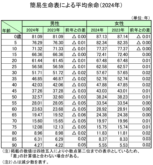 一方、現在の日本の平均寿命は男性で81.09歳、女性で87.13歳となっています。