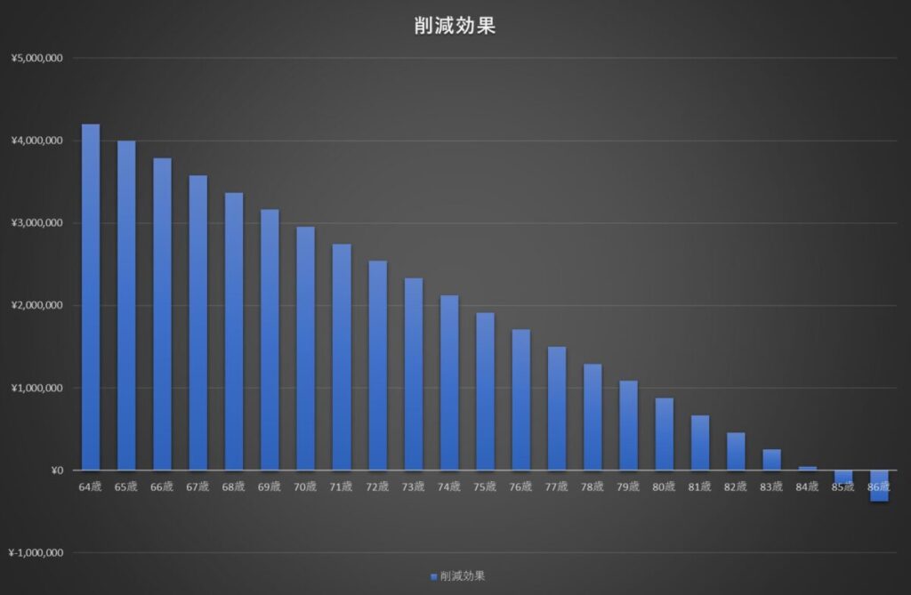 すると85歳からは削減効果がなくなり85歳以上生きた場合は全額免除より納付した方が得ということが分かります。