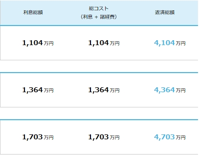 実際は、ローンを組んだ時点でこのくらいの総返済額になることを想定しておかなければなりません。