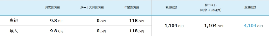 机上の計算であることと、金利上昇に備えてあくまでどのくらいの資金の用意が必要なのかの参考程度にみて下さい。