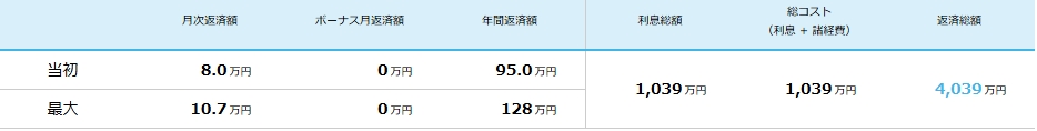 先ほどの変動金利は総返済額が4,039万円だったので、固定金利でローンを組んでいたよりも総返済額は少なく済んでいます。