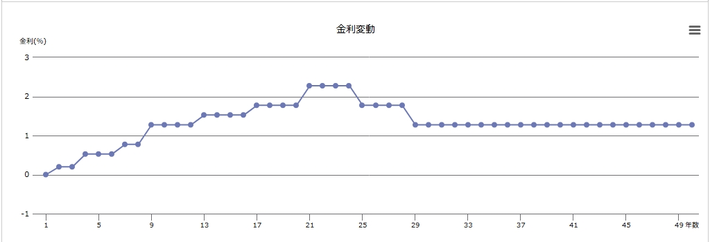 一方、同条件で先ほどの想定シナリオの金利動向を当てはめると次のようになります。