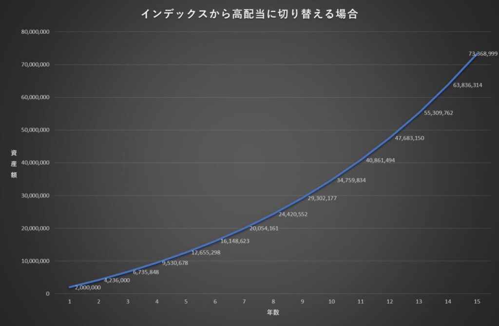 インデックス投資で増やしてから高配当投資に切り替える場合のシミュレーション
