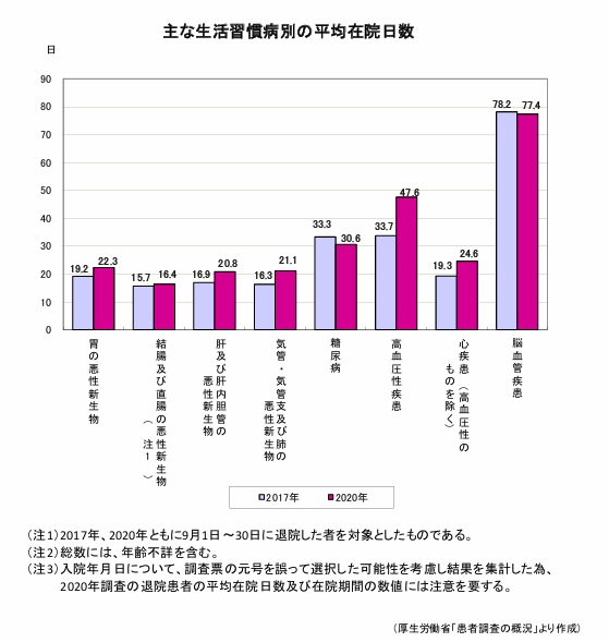 生活習慣病にもなると、平均在院日数も膨らみそれだけ医療費もかかります。
