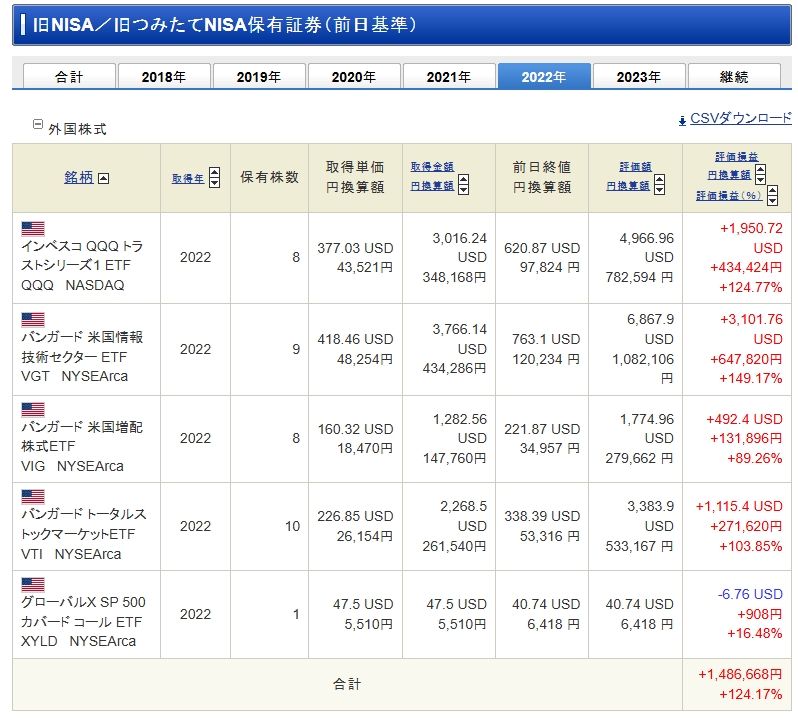 まず、2022年度の旧NISAの銘柄と保有数を把握しましょう。