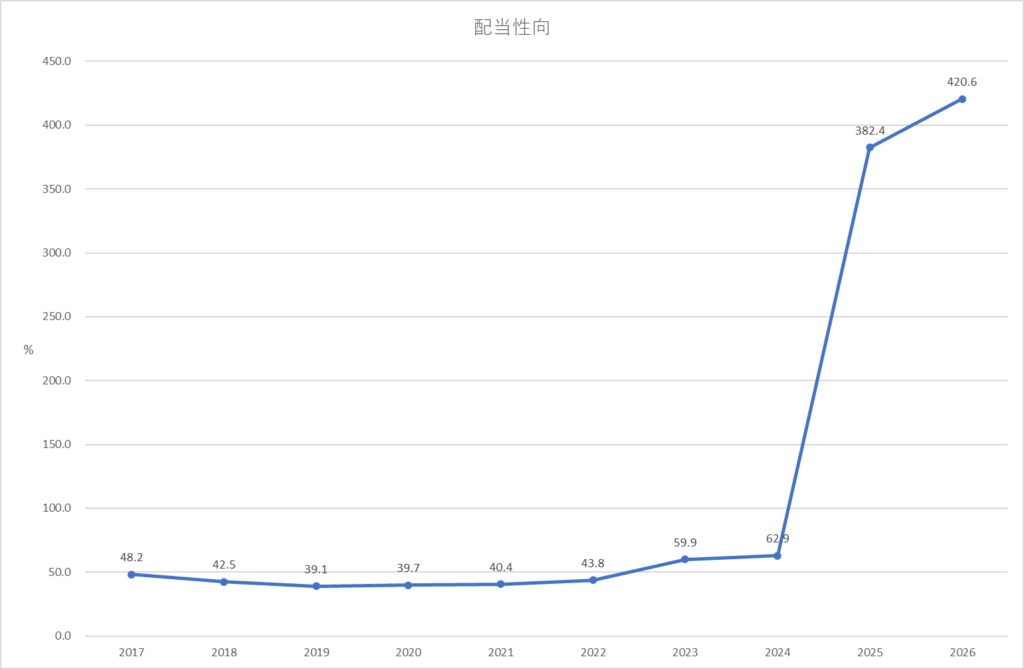 2025年から急激に配当性向が高くなっていることが分かります。